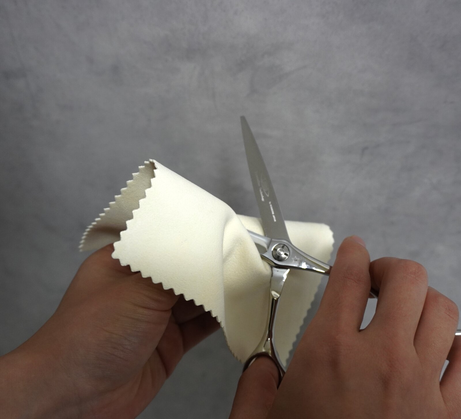 眼鏡やカメラのレンズにも使える優しい天然のクロスなので、繊細なハサミのお手入れに最適なメンテナンス道具です。