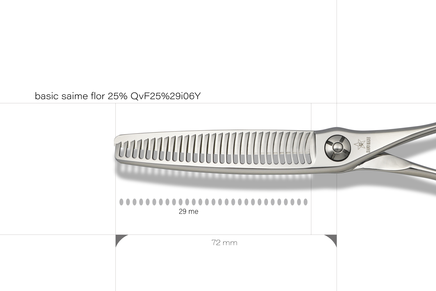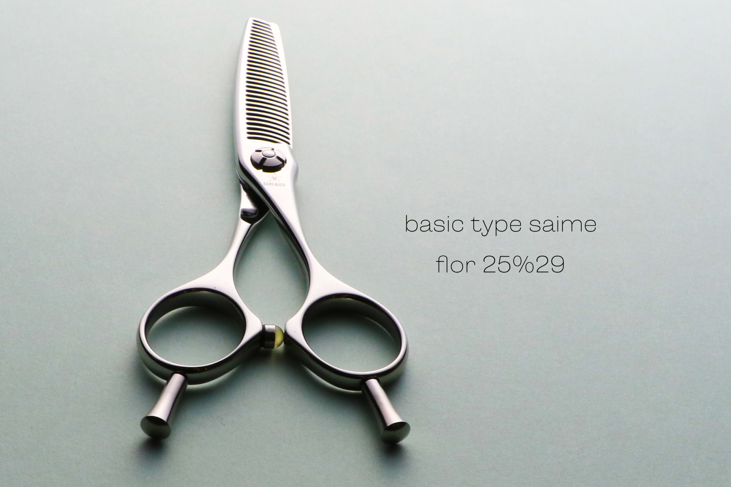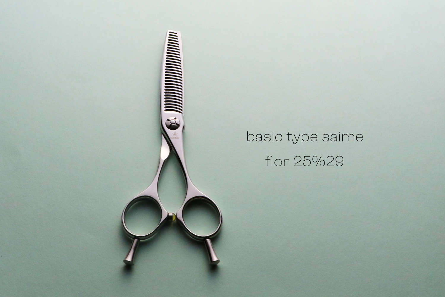 女性のスタイルからメンズカットのスタイルまで幅広く対応できるカット率25%のセニングシザーです。セニングシザーのカット率の中で一番選ばれているのが25%です。櫛目が29目で細かく、カットラインをキレイにぼかすことができます。ハンドルは、メガネタイプで正刃、逆刃どちらでも使うことができます。ハンドルの長さが標準よりコンパクトなので手の小さい方でも使いやすく設計されています。はじめてセニングシザーを揃える方にもおすすめのカタチです。