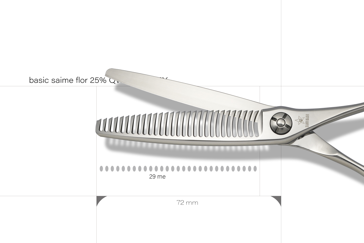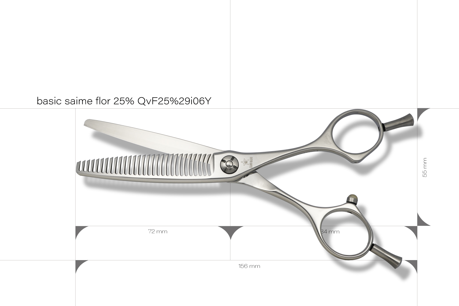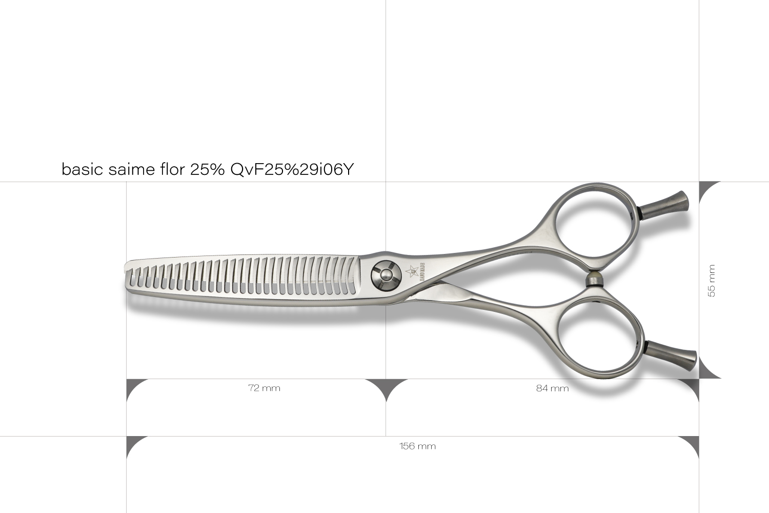 女性のスタイルからメンズカットのスタイルまで幅広く対応できるカット率25%のセニングシザーです。セニングシザーのカット率の中で一番選ばれているのが25%です。櫛目が29目で細かく、カットラインをキレイにぼかすことができます。ハンドルは、メガネタイプで正刃、逆刃どちらでも使うことができます。ハンドルの長さが標準よりコンパクトなので手の小さい方でも使いやすく設計されています。はじめてセニングシザーを揃える方にもおすすめのカタチです。