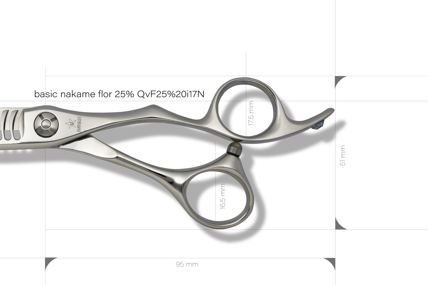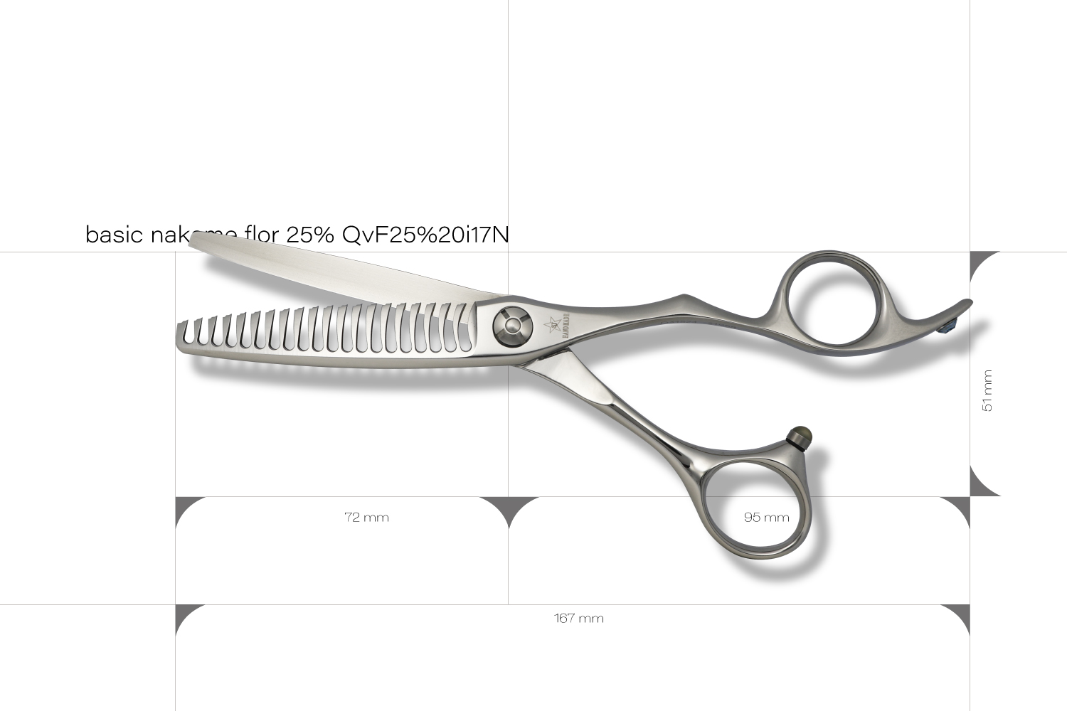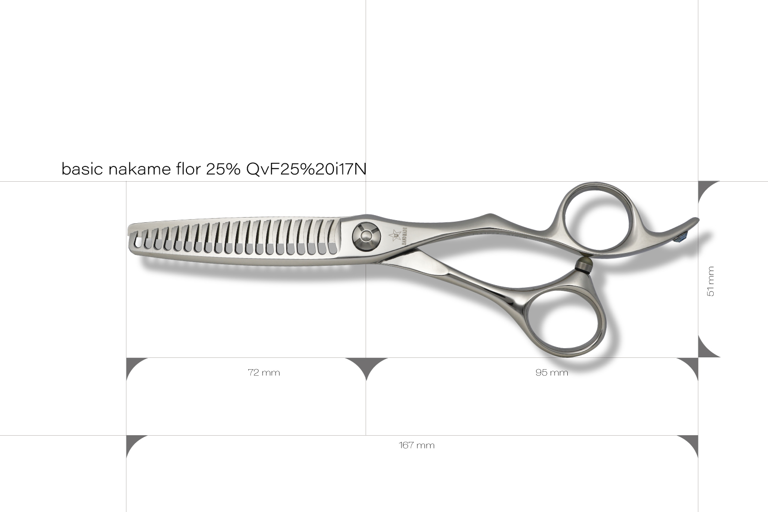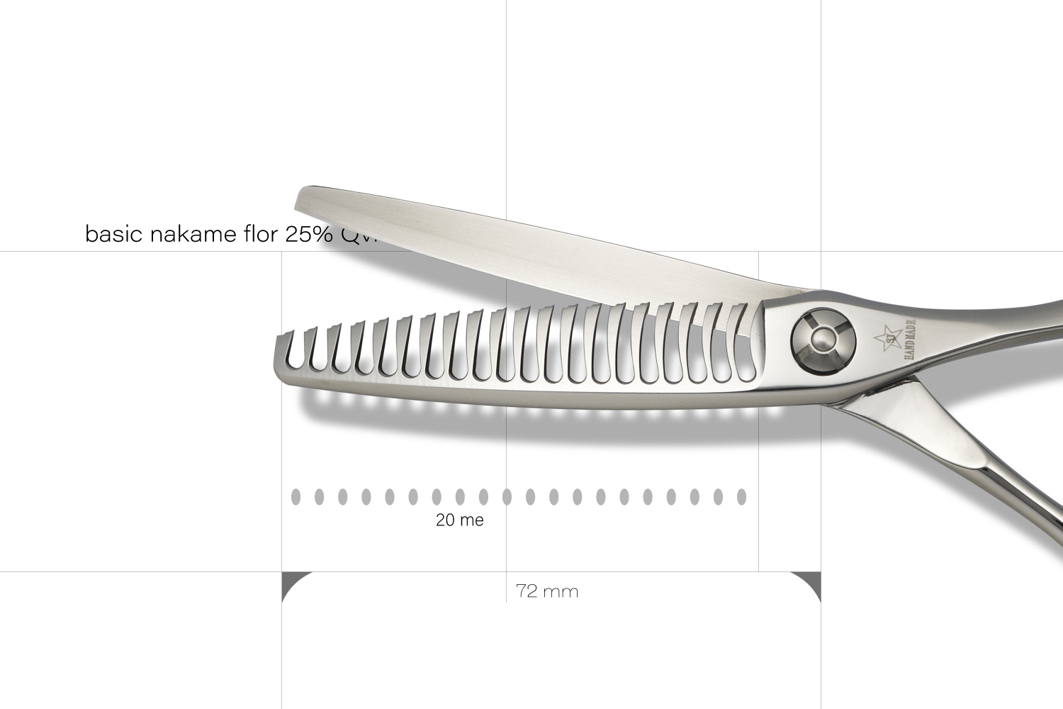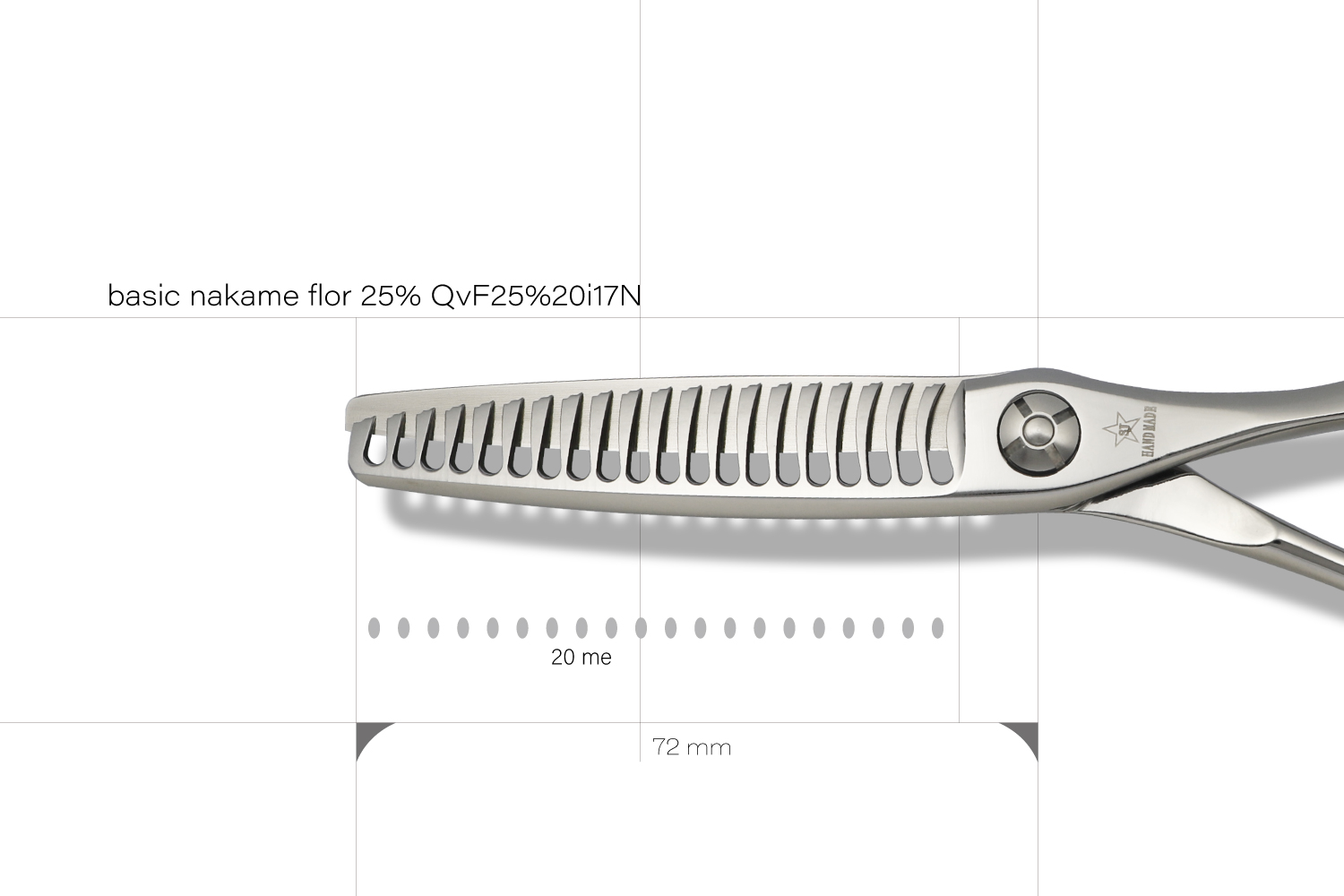 女性のスタイルからメンズカットまで幅広く対応できる25%のセニングシザーです。櫛刃のヘッド形状は、フロールヘッド(多段構造)となっているので切れの柔らかさとカットラインが出にくい設計となっています。目数は、20目で髪が抜ける隙間が広く抜けの良さを実感できます。ハンドルは、キャメルのオフセット形状で手にフィットして疲れにくい形となっています。メインのセニングシザーとして、はじめてセニングシザーを購入する方にもおすすめのモデルです。