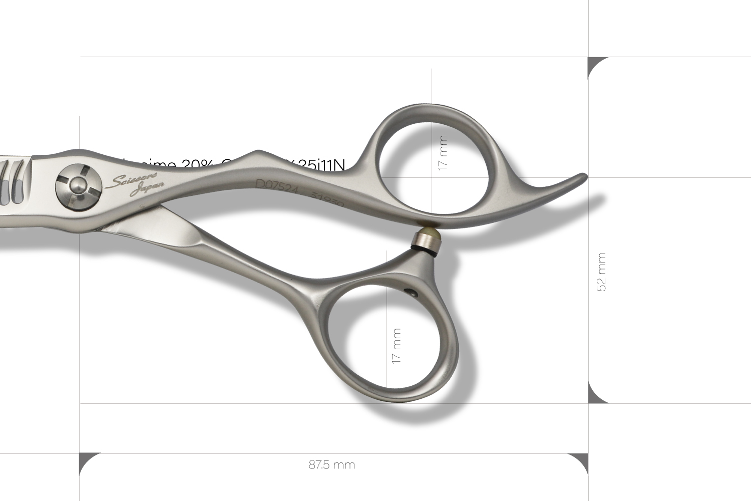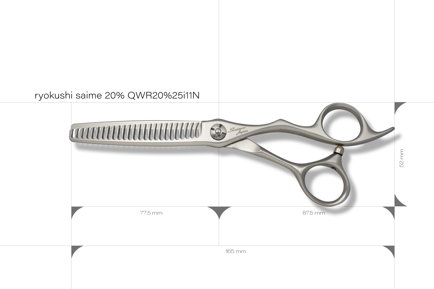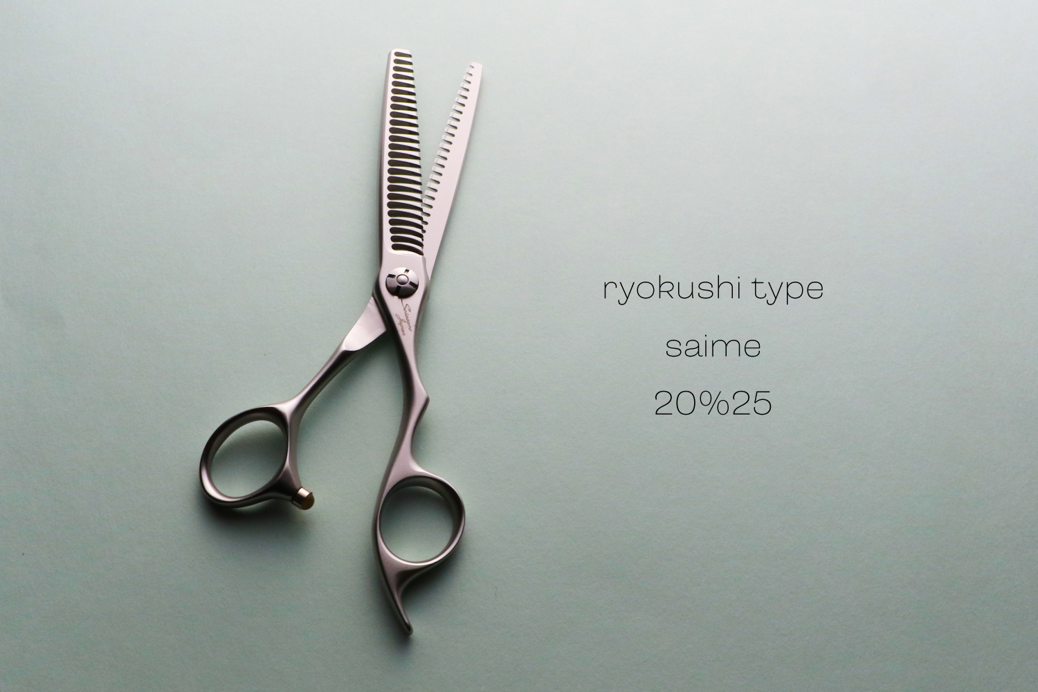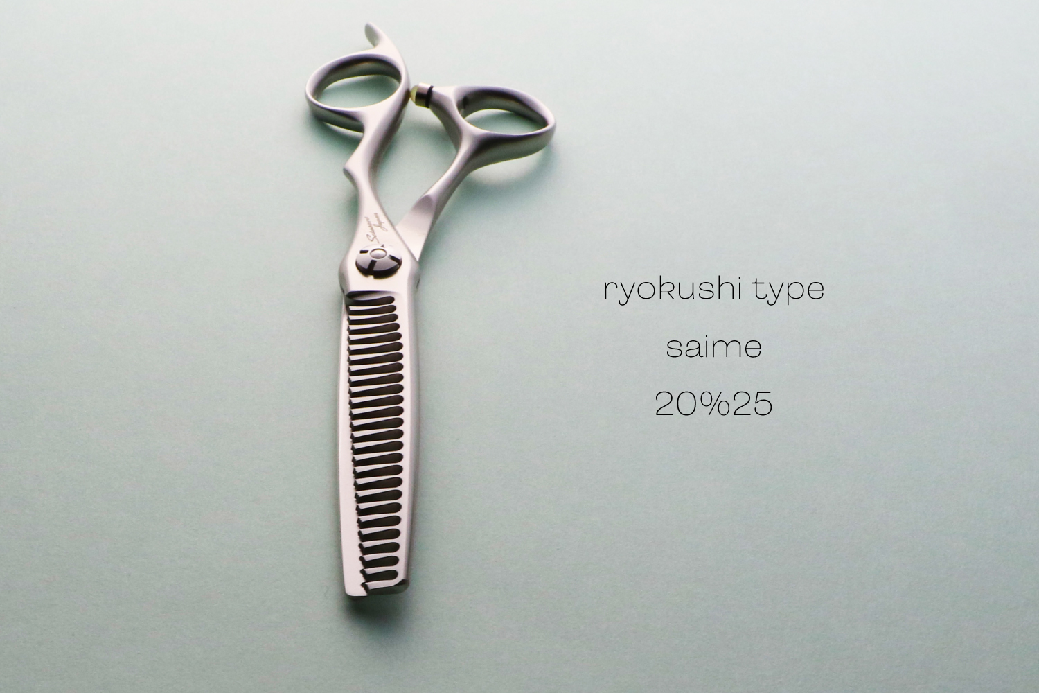 最大の特徴は、静刃側と動刃側の両側が櫛刃形状になっていることです。両櫛刃に設計することでシザーを閉じてパネルから抜く際に髪に擦れる刃が隙間に出ないことで、どの方向でも抜くことが可能なのと髪に対するダメージを与えることがありません。カット率は、顔回りなどの細かな調整が必要な部分から全体毛量の調整まで対応可能な20%に設定されています。カット率が多くないので安心して使うことができます。ハンドルは、標準より少し小さい手にフィットするキャメルのオフセットタイプとなります。シザーが安定して疲れにくい形状です。