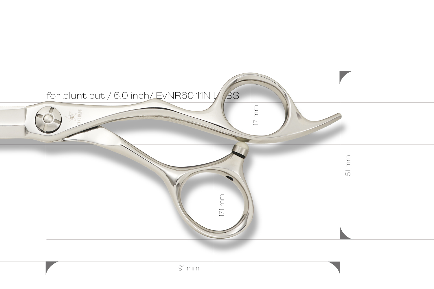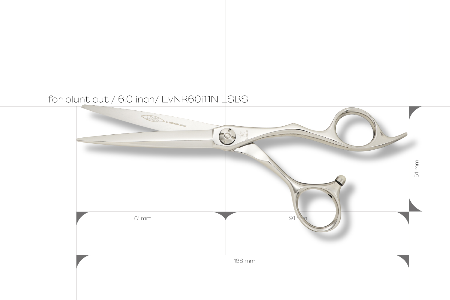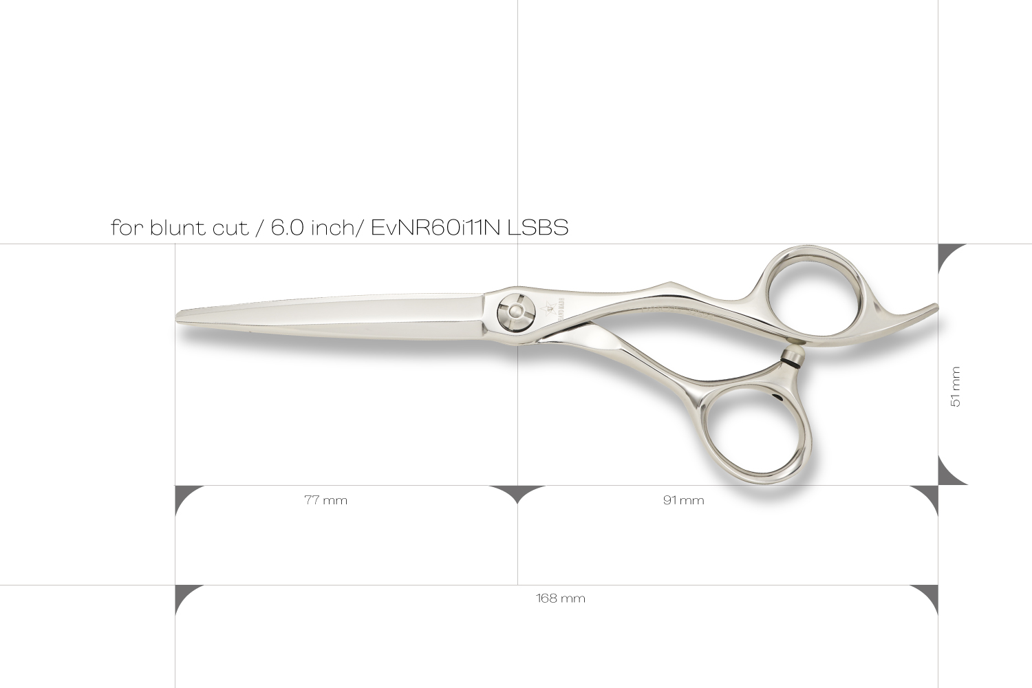 刃がスリムで無駄のないシンプルな形状のブラントカットに適したシザーです。刃の長さは、6.0インチでカット効率と操作性のバランスが良くメインのシザーとしておすすめです。ハンドルは、標準的な大きさより少しコンパクトで手の小さい方でも手にフィットしてシザーを安定させることができます。このモデルは、無駄がなくシンプルな形状で軽さを追求しているので、繊細なカットにも対応できるシザーです。